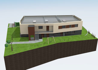 und eine 4.5 Zimmer-Wohnung mit eigenem Gartenanteil. Im Obergeschoss erwartet Sie ein Studio und eine 3.5 Zimmer und 4.5 Zimmer-Wohnung mit jeweils einem Balkon und einer eigenen